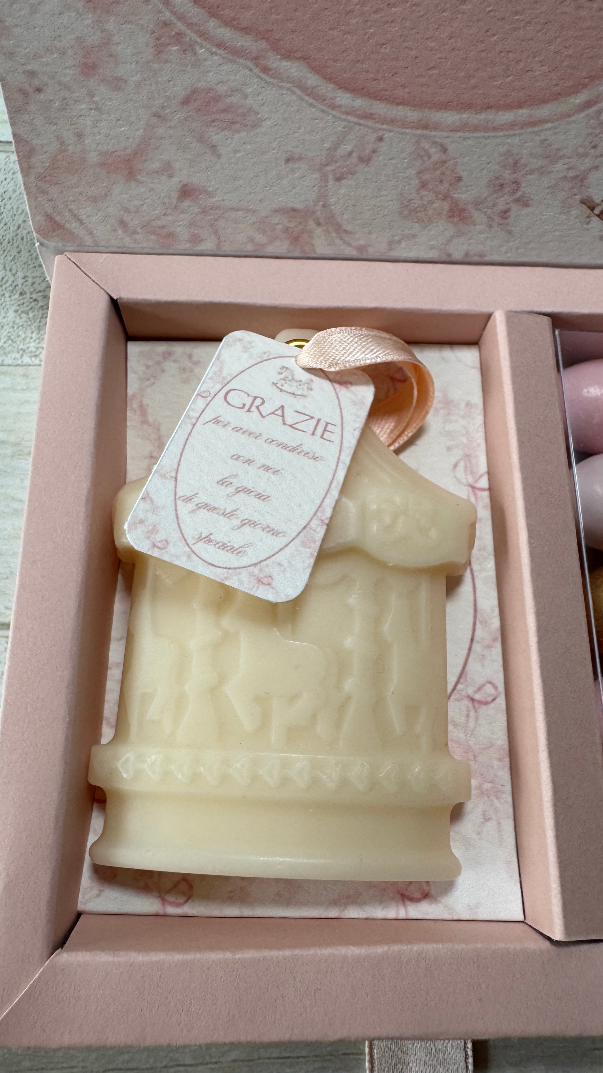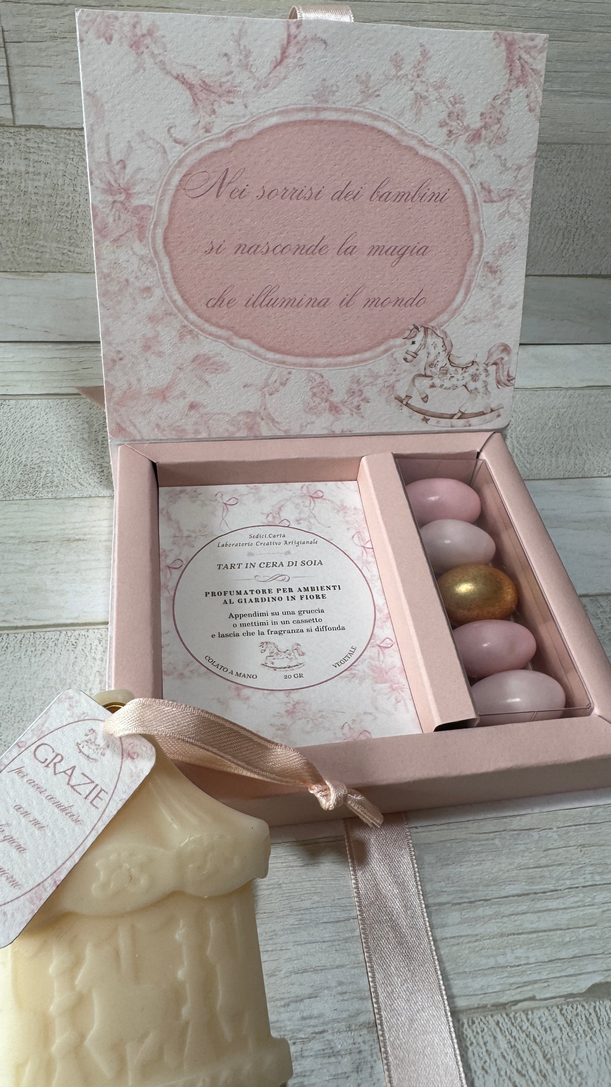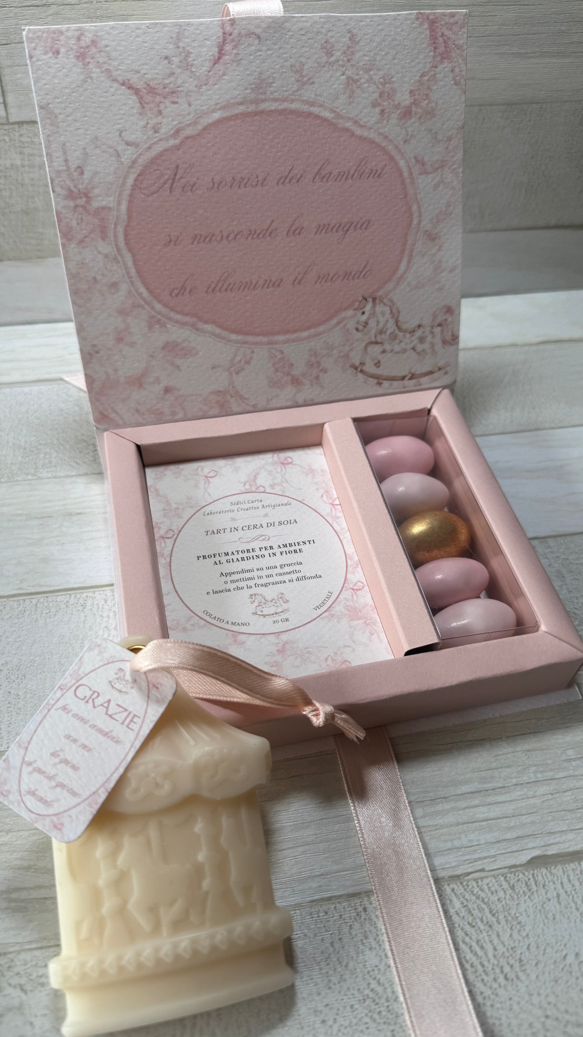 Bomboniera Battesimo - Cofanetto Libro con Giostra Cavalli in Cera di Soia