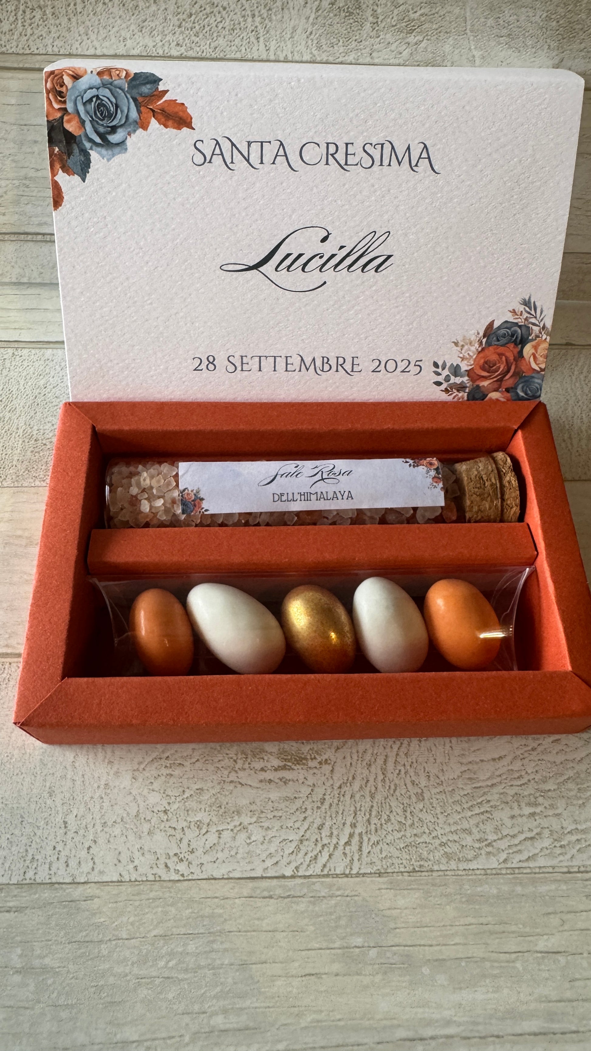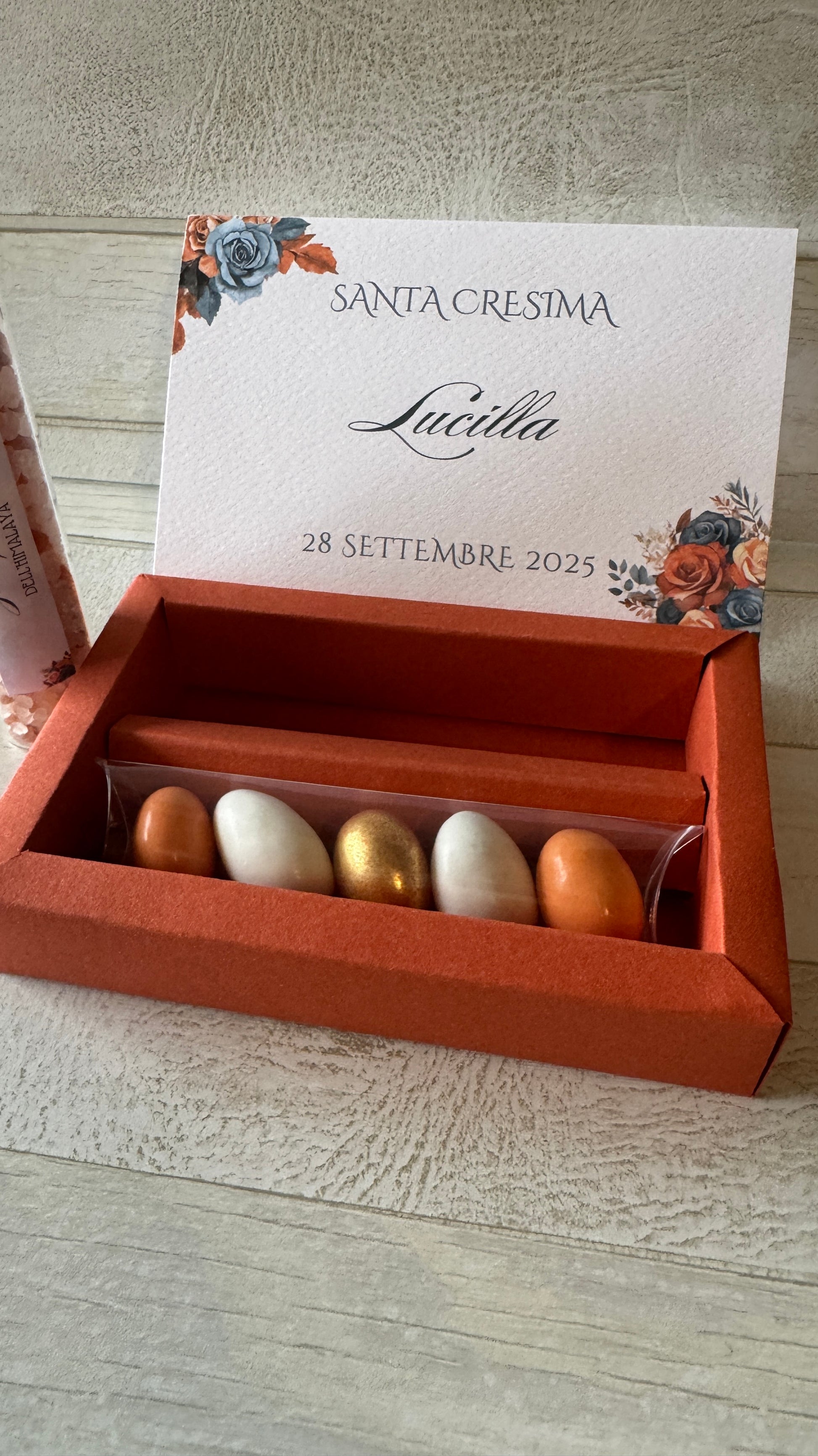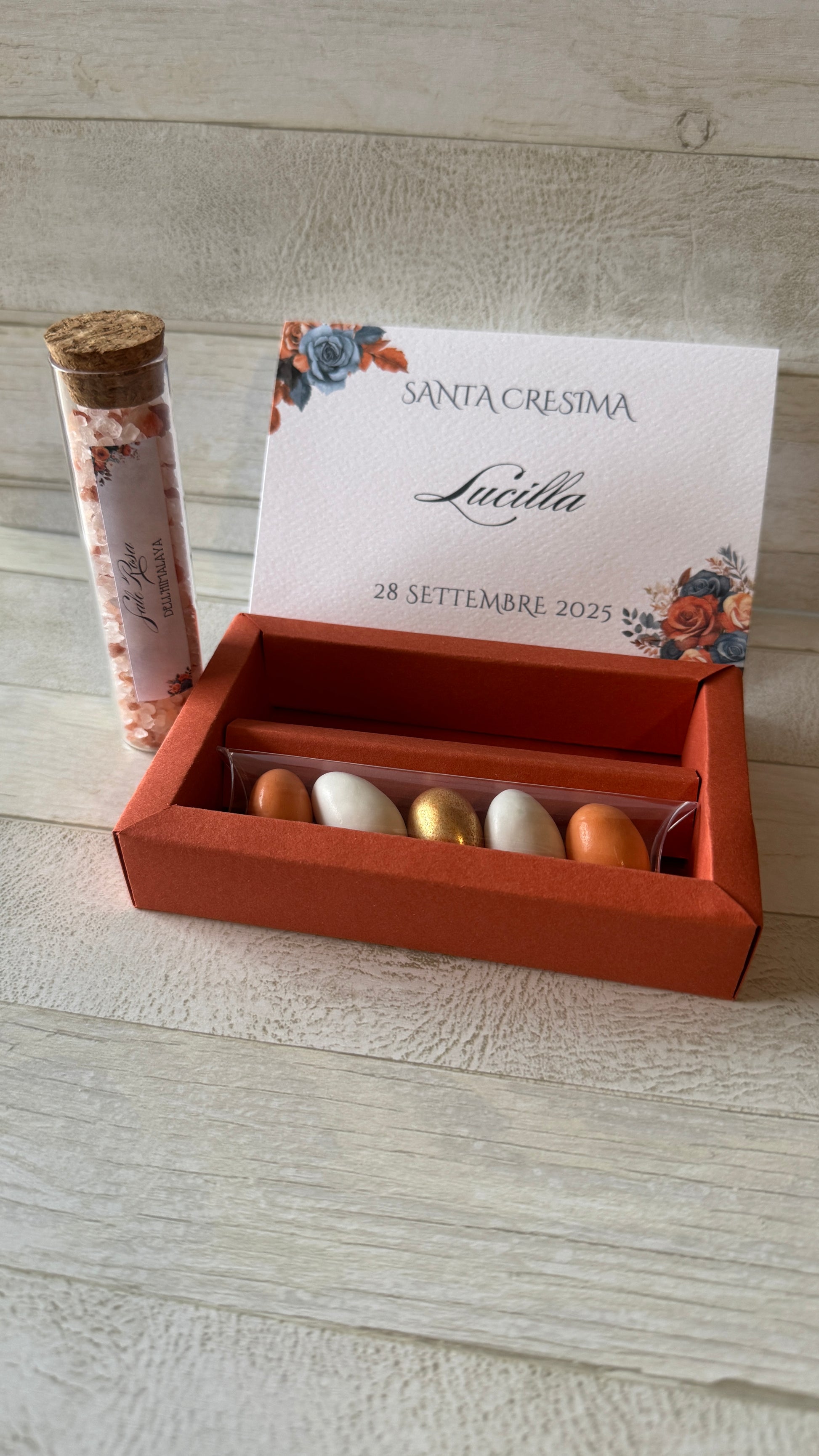 - testi personalizzati : è possibile inserire liberamente la frase all'interno della confezione. Solitamente viene scelta una frase/aforisma oppure una frase di ringraziamento, entrambe personalizzabili.