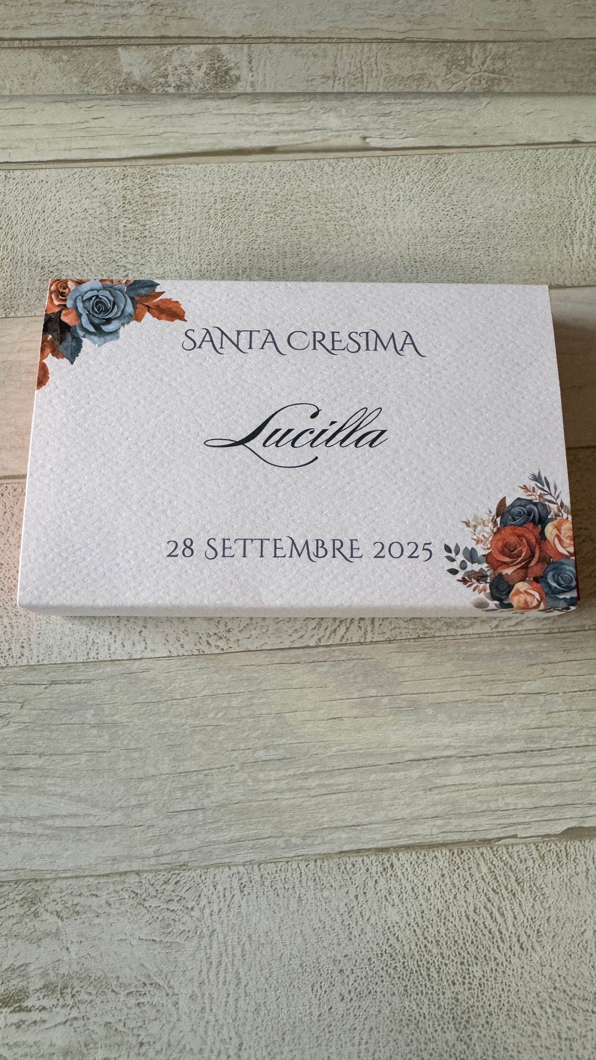 Una creazione artigianale curata in ogni dettaglio, ideale per celebrare la Prima Comunione e la Cresima .