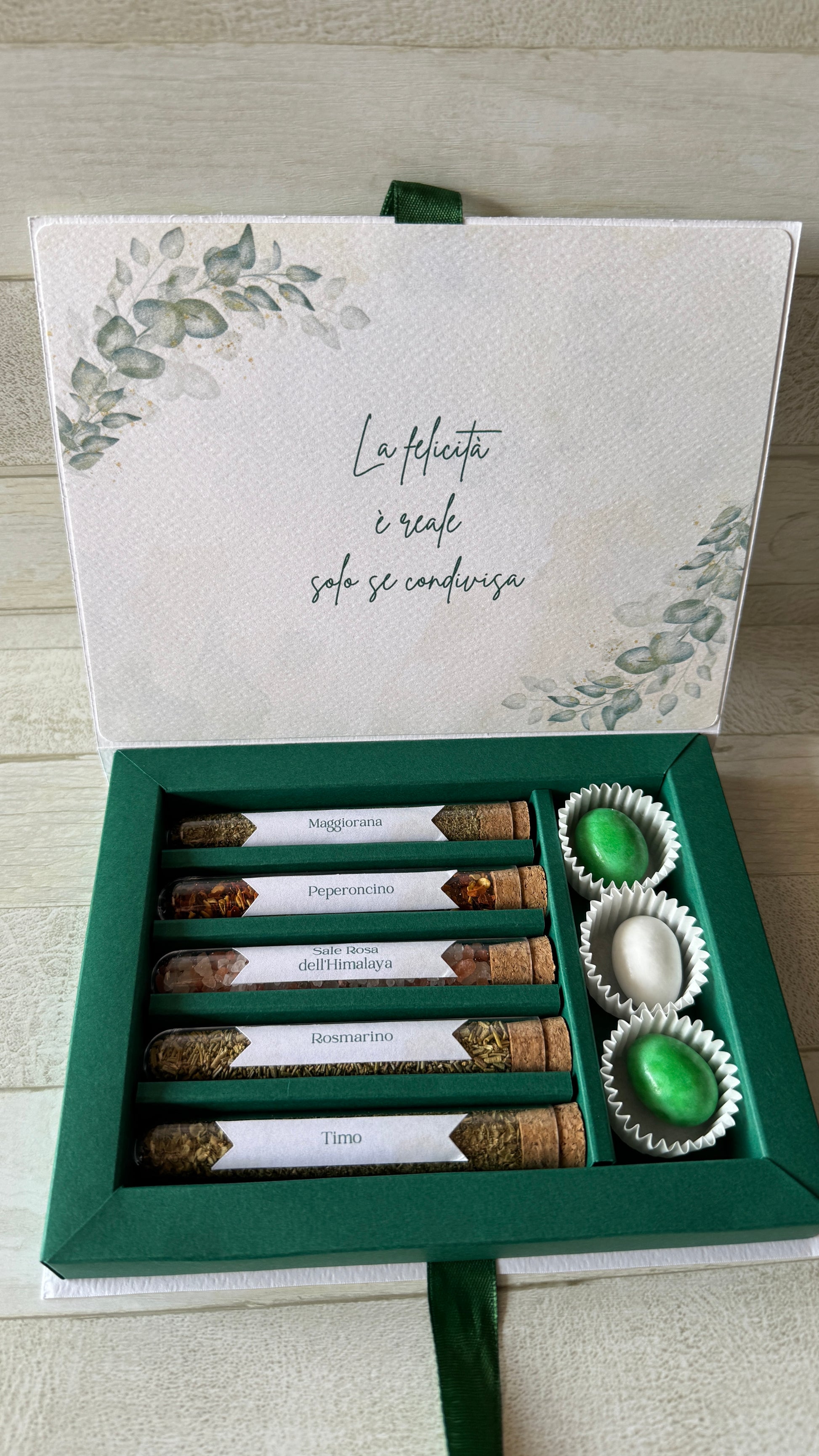 - testi personalizzati: è possibile inserire liberamente la frase all'interno della confezione. Solitamente viene scelta una frase/aforisma oppure una frase di ringraziamento, entrambe personalizzabili.