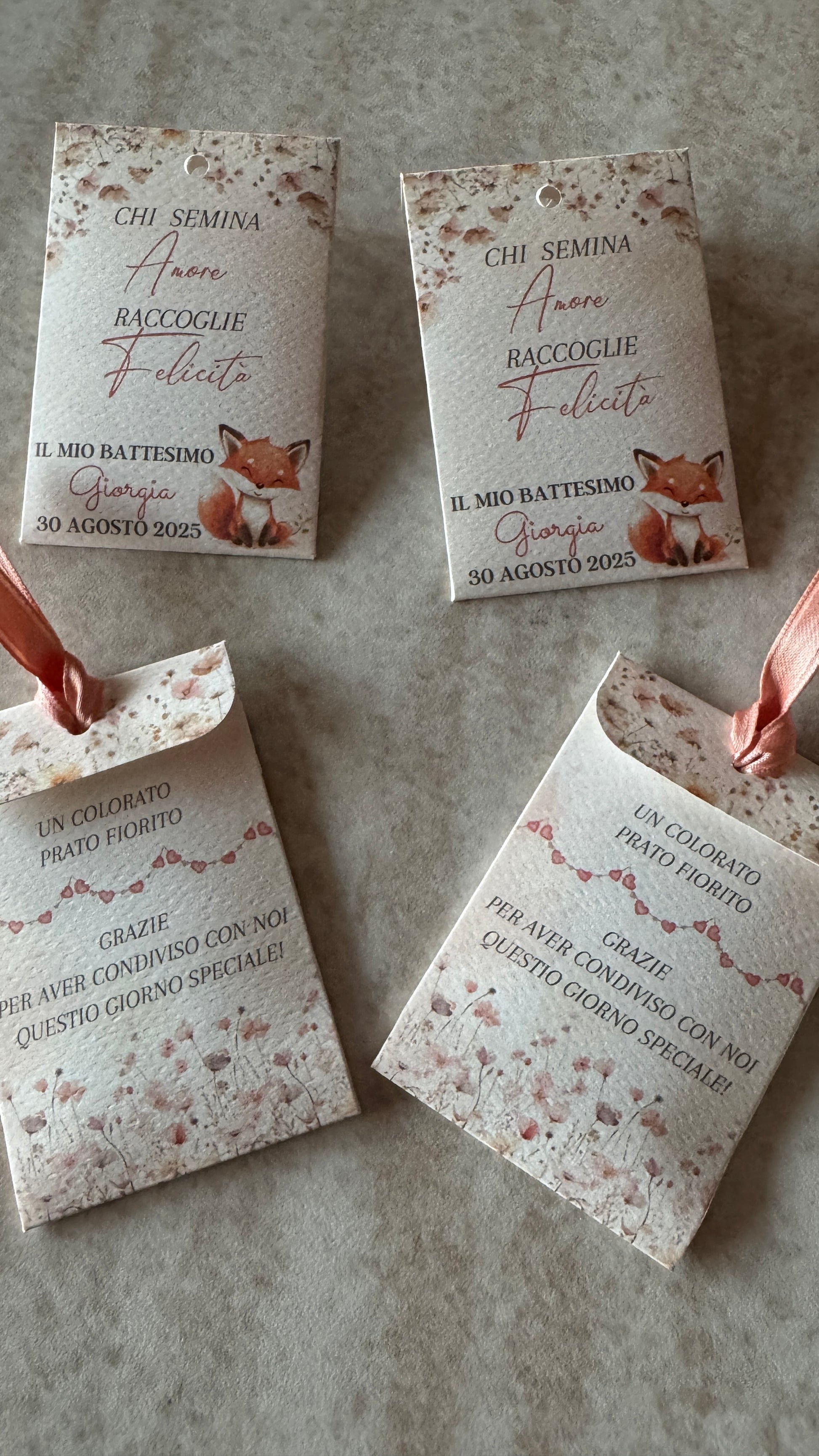 - testi personalizzati: nome, data, frase o ringraziamento
