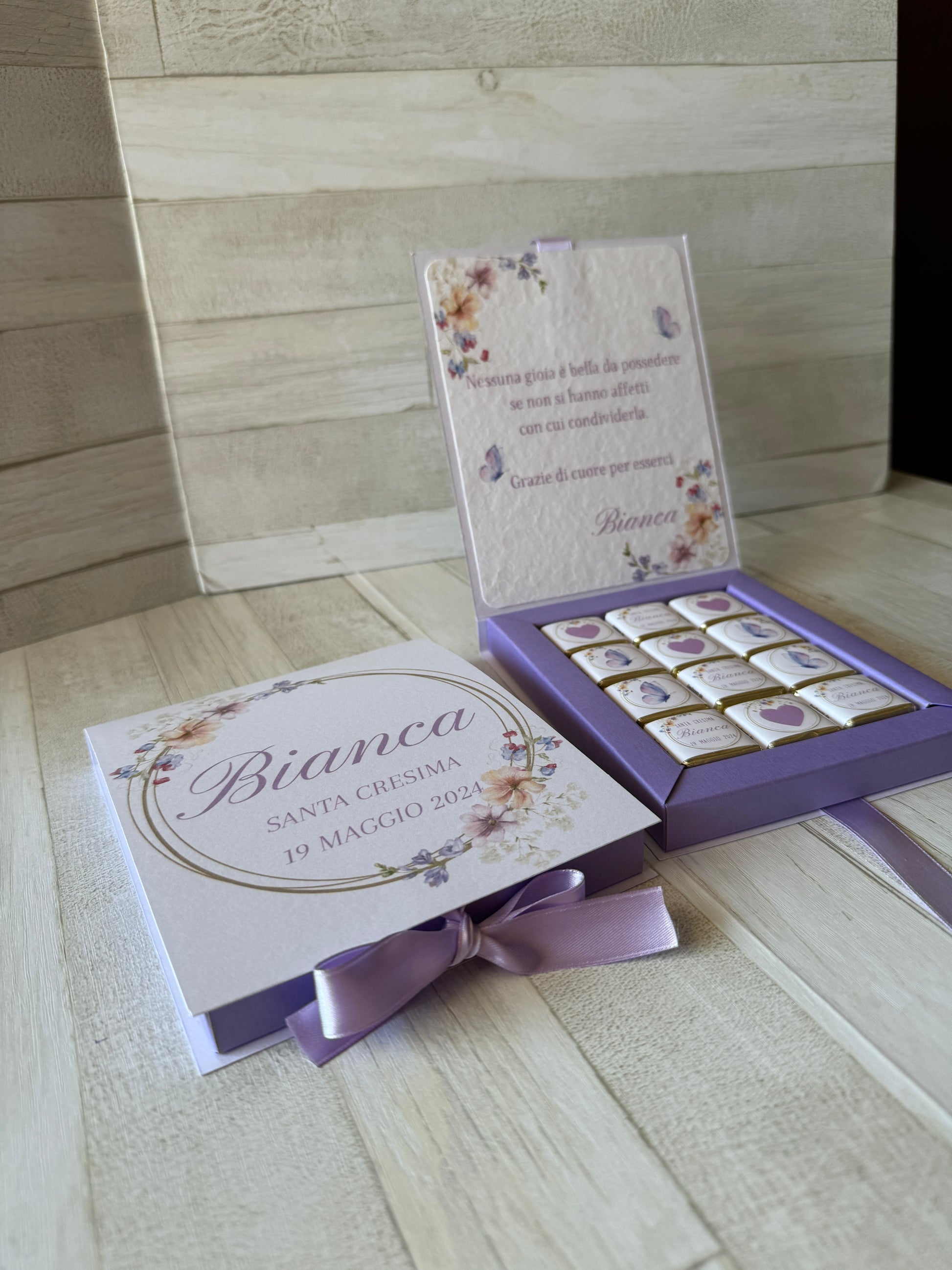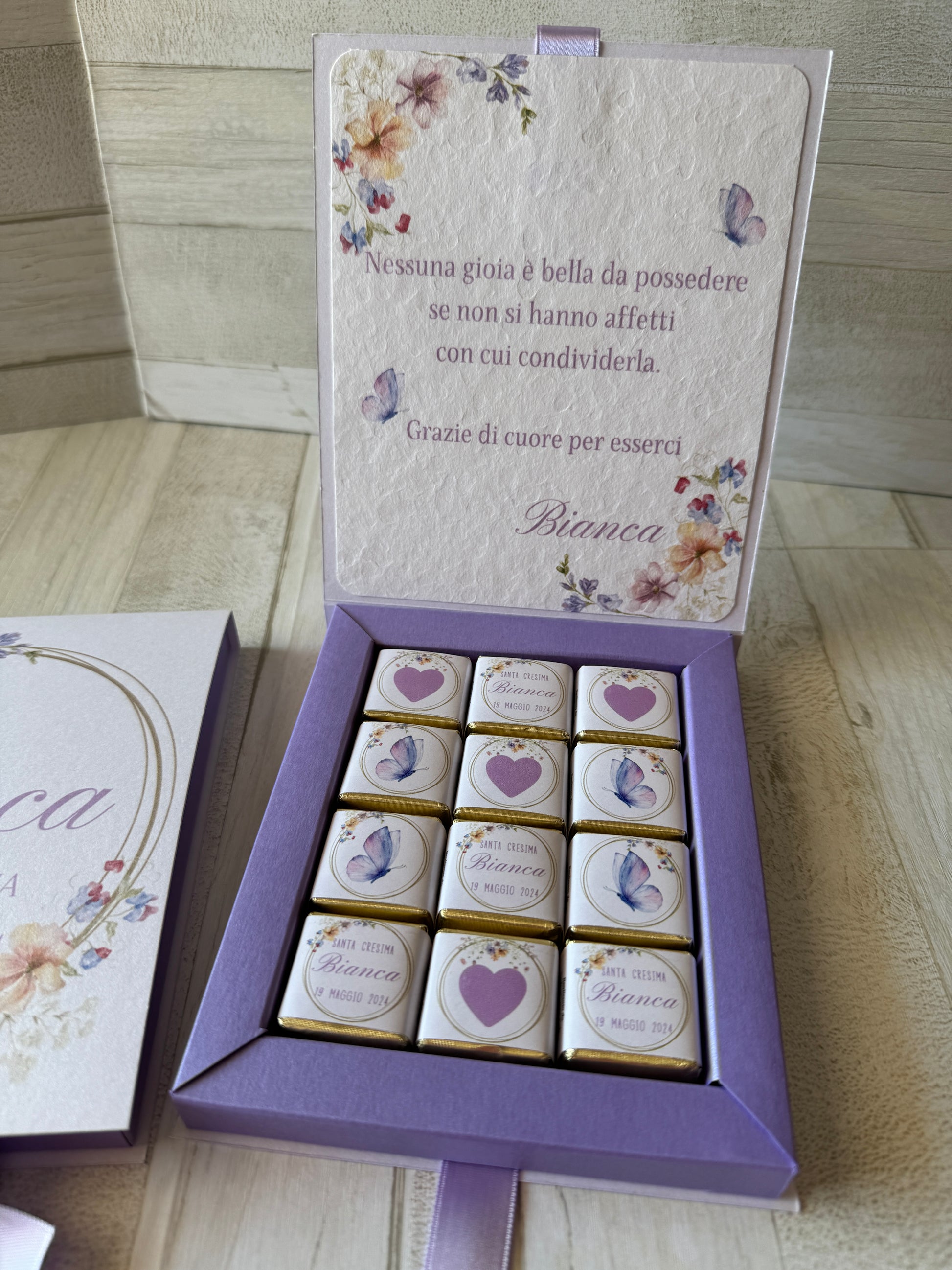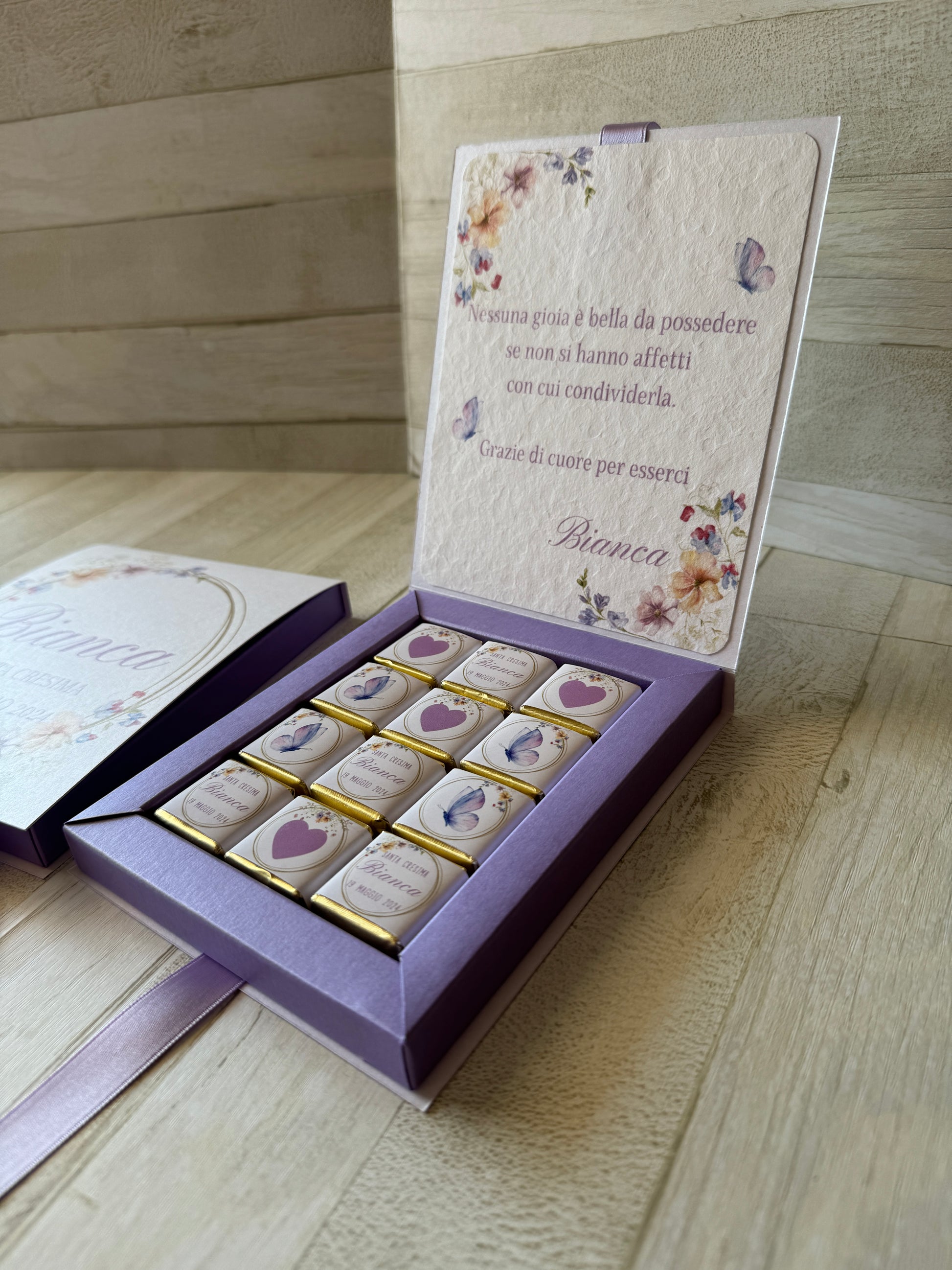 - Scatola a libro realizzata a mano , dimensionata in base al numero di cioccolatini