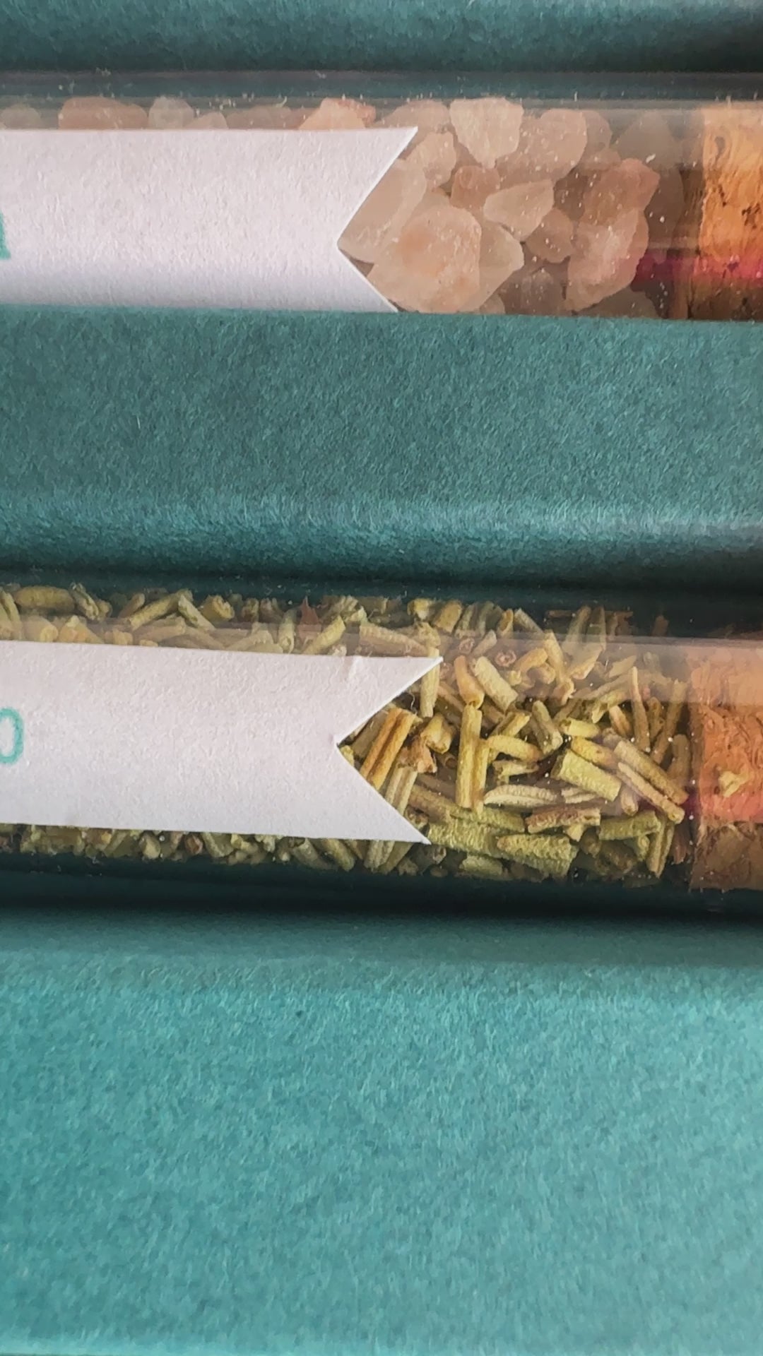 - Set di 3 provette con spezie e/o sale (circa 3 gr per spezie – circa 8 gr per vendita)