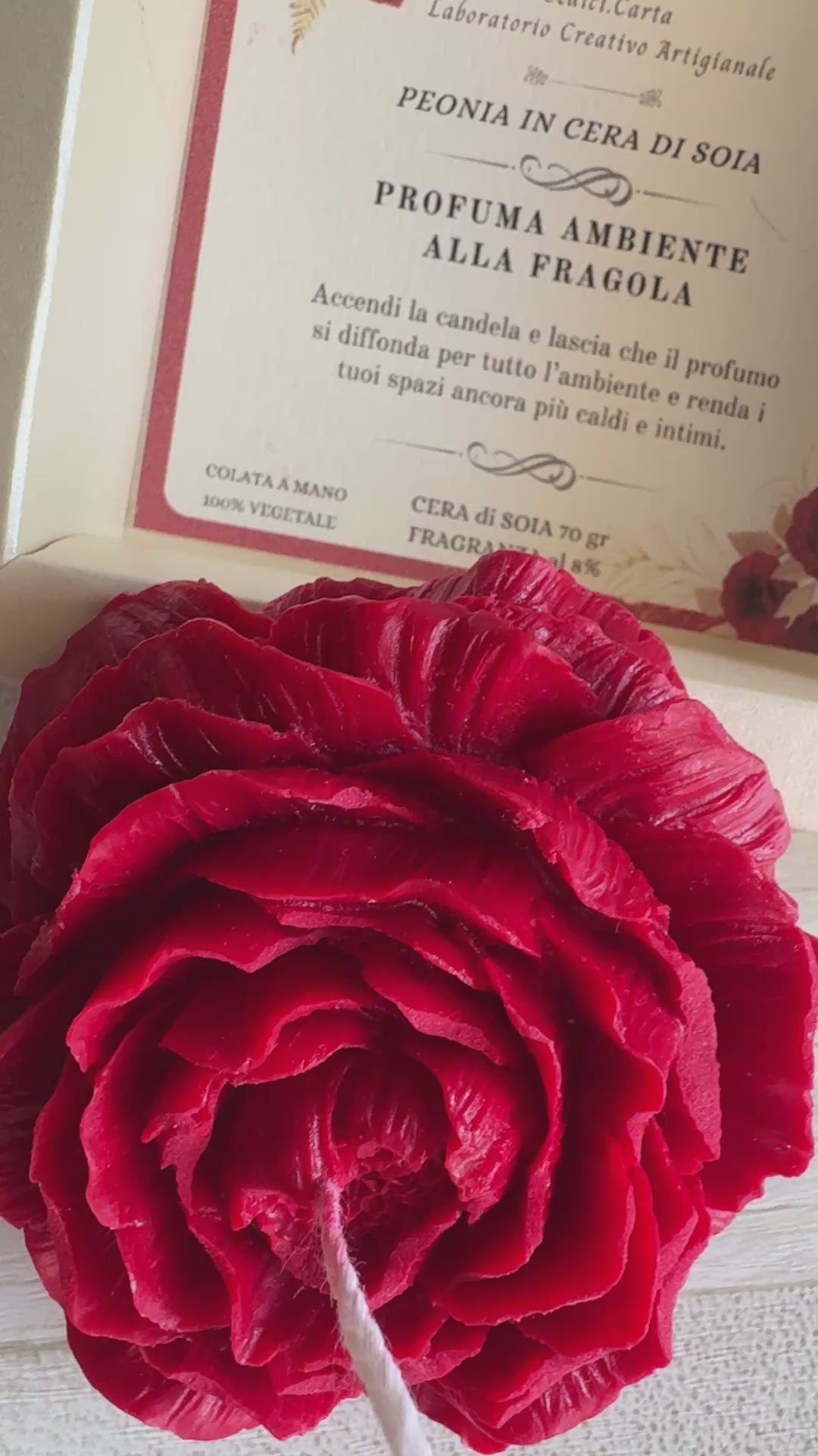 Delicato profumatore per ambienti a forma di peonia, colata a mano in cera di soia e pensata per donare un tocco di eleganza e freschezza a cassetti, armadi o piccoli spazi.