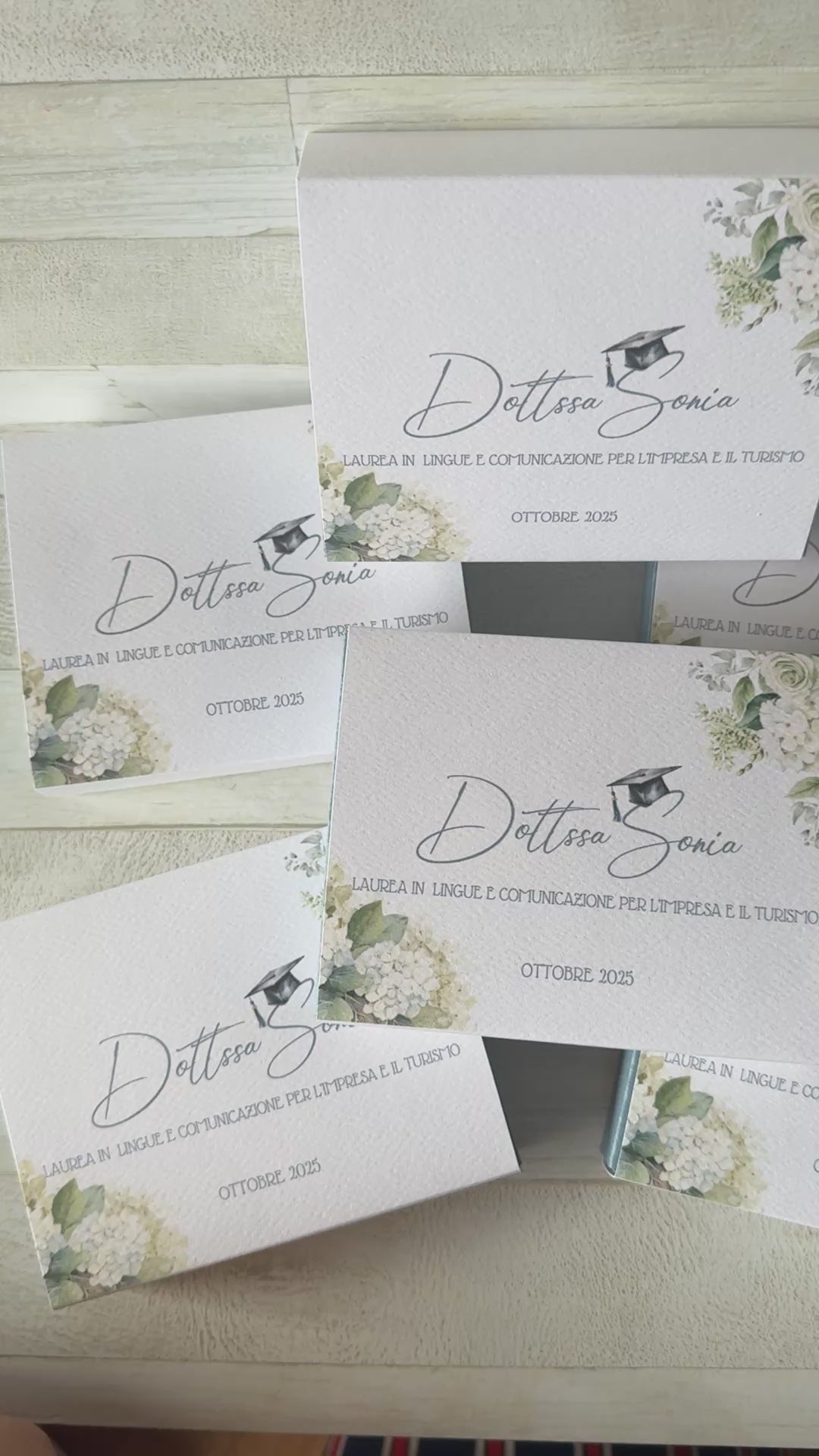 Presentata in una raffinata confezione con chiusura a scorrimento e 3 coriandoli in eleganti pirottini, dal design sobrio e curato nei dettagli; (possibilità anche con 5 coriandoli )