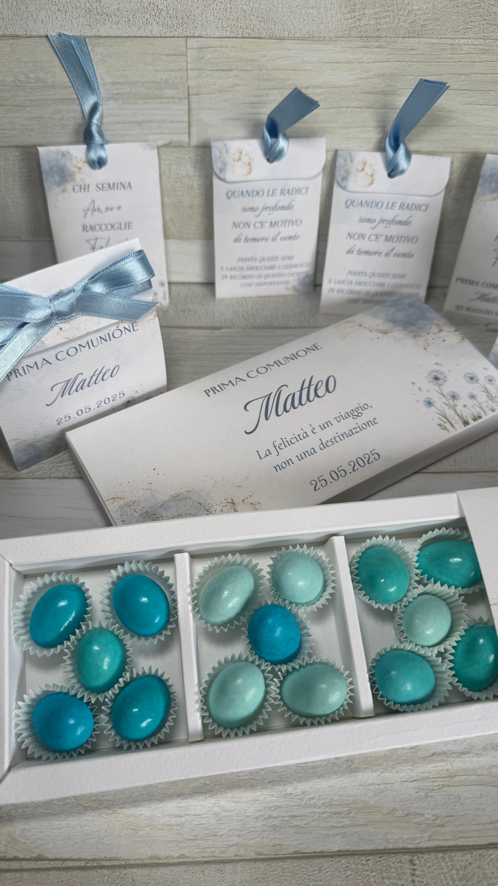 Porta confetti Comunione e Cresima – Cofanetto a scorrimento degustazione personalizzabile (15 confetti)